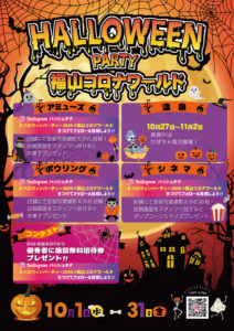 コロナワールドの月間イベント!10月はハロウィンパーティー!高校生以下…