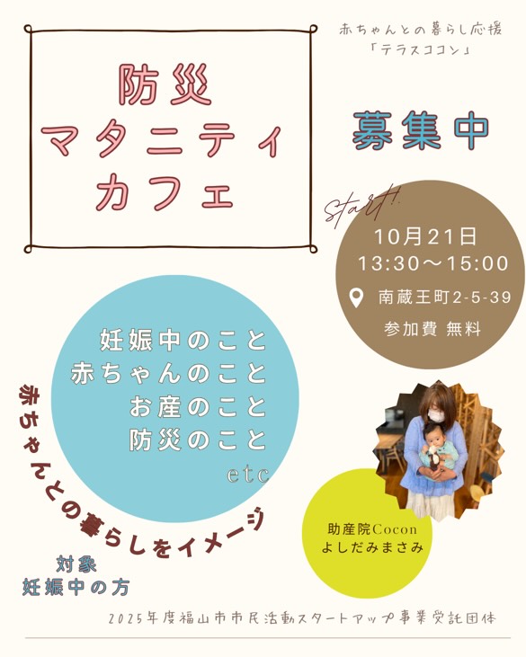 妊娠中のことや赤ちゃんのこと、防災についてなど、赤ちゃんとの暮らしをイメージしながら、気ままにおしゃべりを楽しめます。お申し込みはインスタのリンクから。