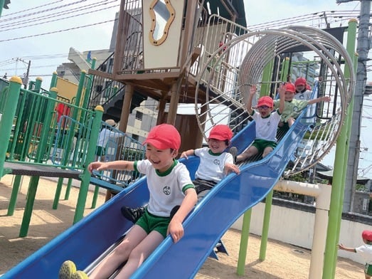 学校法人のぞみ学園「天使幼稚園」「明王台シャローム幼稚園」は、知・情・体のバランスが取れた〝根 っこの力〞を育む「総幼研教育」に基づいた教育を行っています。毎朝いちばんは音楽に合わせて元気に 跳び箱・鉄棒などで遊ぶ「体育ローテーション」を実施しており、できる喜びや、一つ上の目標に挑む気持ちも育み、並んで自分の番を待つなど集団の中でのルールも自然と体になじんでいきます。 英語視聴覚教材(サイバードリーム)を用いた英語遊びも毎日行っており、英語で話したいという意欲を 自然に育成。伝承遊びやことば遊び、絵本の時間も多く、豊かな表現力を身に付けます。菜園活動では 野菜を育て、日課遊びでは、ひらがなやカタカナ、漢字、国旗、数字などに遊びながら接します。リズムよく繰り返し、集中力を養い、言葉の引き 出しも増やします。ほかにも音楽・演劇・絵画といった表現遊びを通して自主性とさらに豊かな総合表現力を育みます。2園とも「認定こども園(幼稚園型)」で、1号・2号・3号・認可外の認定による区別なく、1歳6ヵ月からの幼児教育を実施します。1歳児から 脳の発達や体幹づくりにつながる遊びを毎日実施するため、3学期の発表会では、演奏したい楽器を自分で選んで参加するなど、保護者が「1 歳児がここまでできるようになるとは」と驚くほど心も体も成長します。就労、妊娠・出産等のご家庭の状況の変化にも柔軟に対応し、1・2歳児 クラスは、福山市の2・3号認定がとれない場合は“園独自の「認可外」”枠で通うことができます。里帰り出産など、市外や県外からの一時的な「広域入所」も対応しております。在園中はもちろん、就園前や卒園後も保護者からの相談に親身に寄り添います。