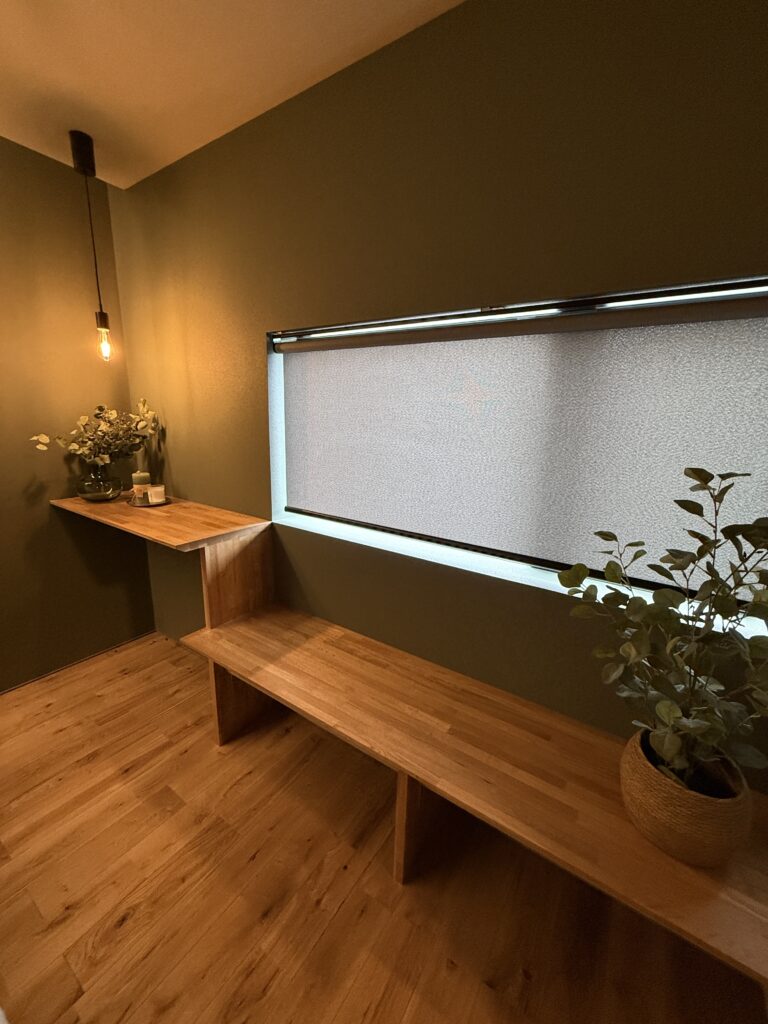 木の温もりと間接照明の優しさ