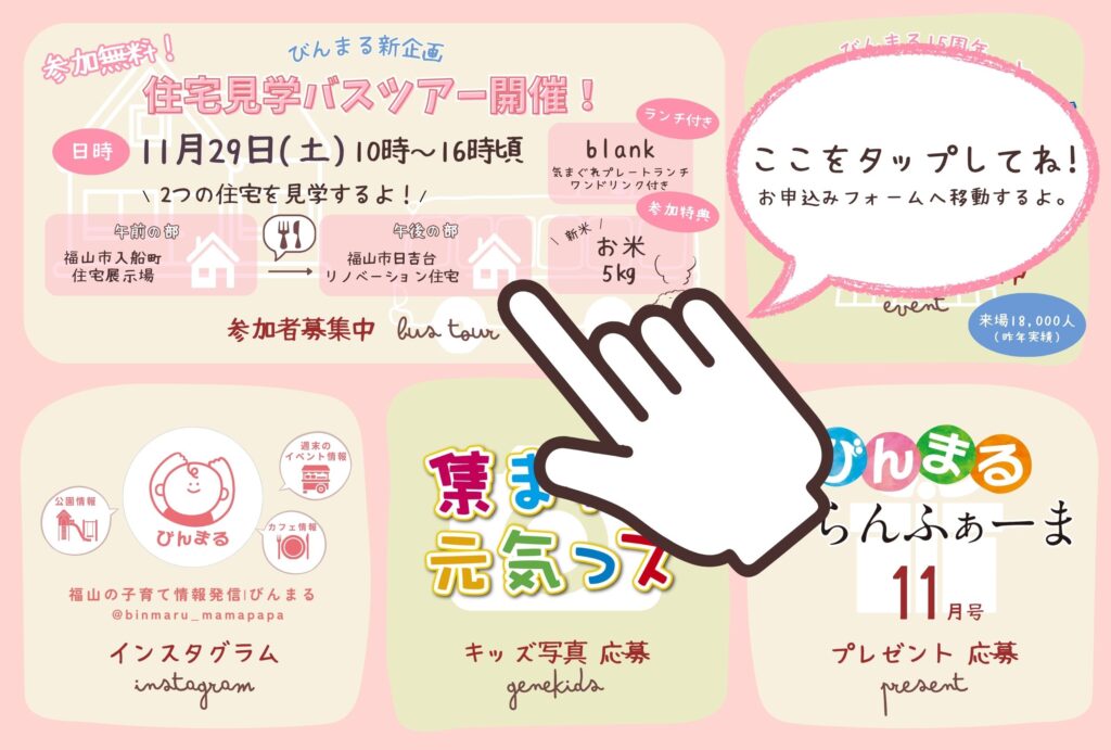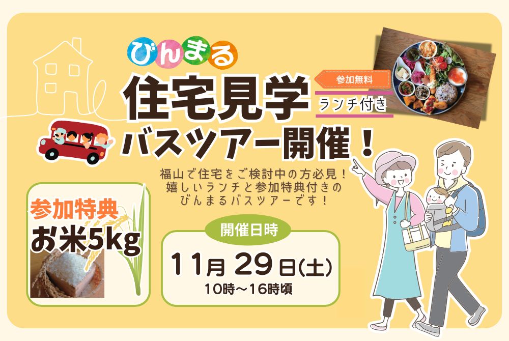今回のびんまる住宅見学バスツアーにご参加いただくと、